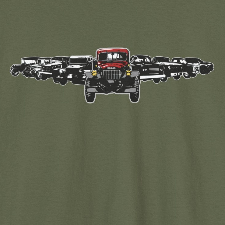 Originally created for our 2014 Rally shirt celebrating 100 years of Dodge, this lineup showcases the iconic progression of Dodge trucks with a strong focus on the legendary Power Wagon lineage. From the 1914 Dodge to the WC ½-ton and WC ¾-ton trucks that inspired the Power Wagon, through the Power Giant era, the classic civilian Power Wagons, and on to today’s modern Power Wagon, this artwork honors the evolution and enduring legacy of these unmistakable trucks.